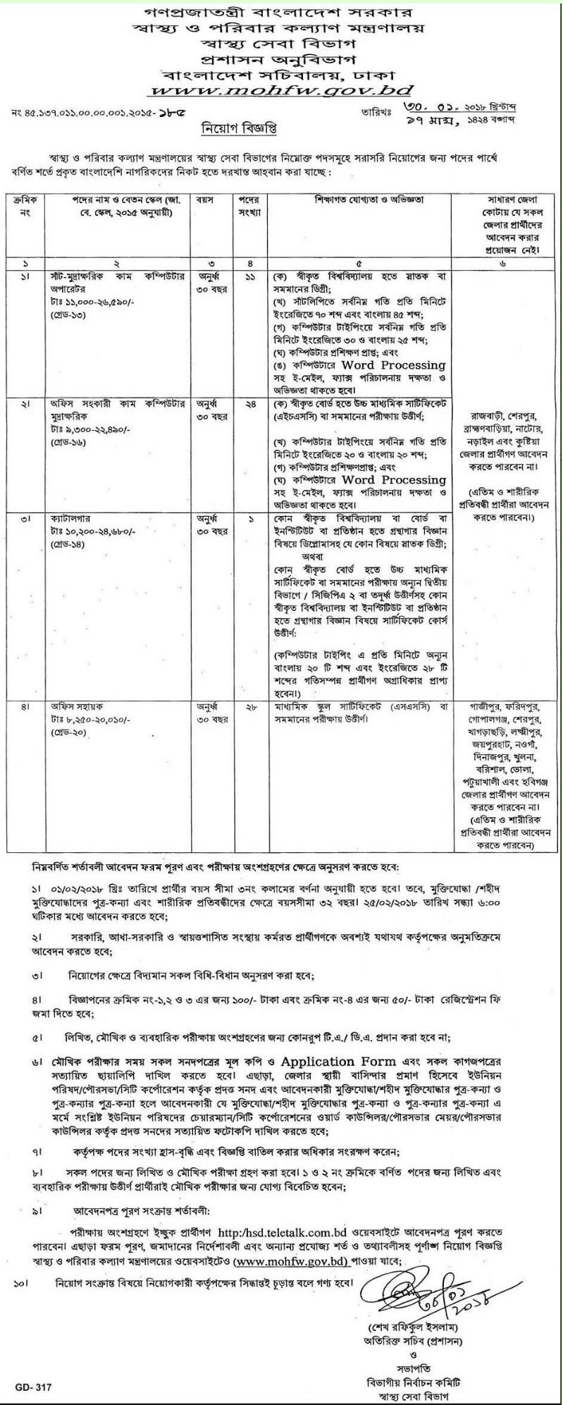 Ministry of Health and Family Welfare has published a new recruitment notice for Health Service Department. Permanent citizens of Bangladesh can apply online for the following posts.