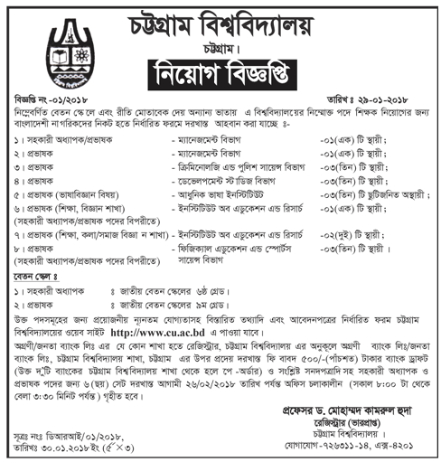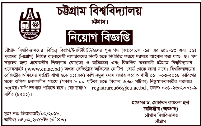Chittagong University Job Circular 2018 Has been published in dial newspaper and to get form the best jobs and education portal website in BD JObs Careers www.bdjobscareers.com .Chittagong University is a one of the top Ranked Reputed Public University in Bangladesh. Recently Chittagong University Authority Looking Various Positions New Lecturer and Other Job Holder for their University empty vacancy. You can check here all of information From BD Jobs Careers. If you are interested government university jobs in Bangladesh the Chittagong University Jobs in good one. Below, you can check all of details with job circular image. So let’s verify these jobs requirements also get ready for Chittagong University Job Circular 2018 and finally submit your application.