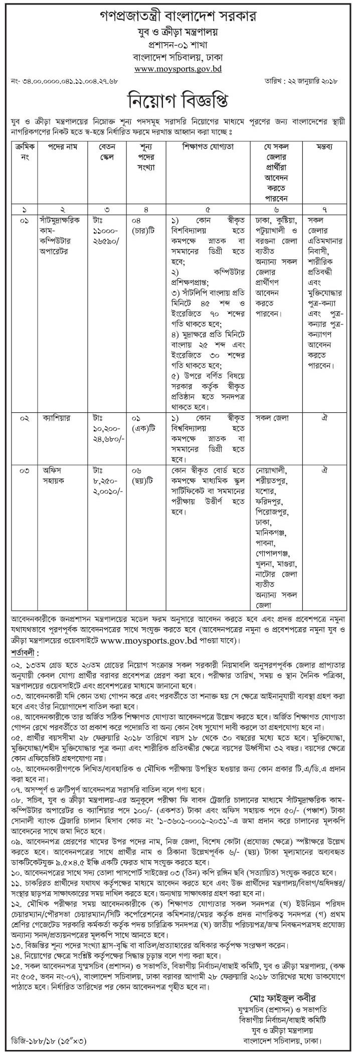 Directorate of Sports Published New Job Circular of Position Chief Assistant , Sports Teacher , Librarian ,Computer Operator, Stenographer cum Computer Operator, Steno Typist Cum Computer Operator, Cashier, Office Assistant Cum Computer Typist. You can see here all information and Apply Today!!